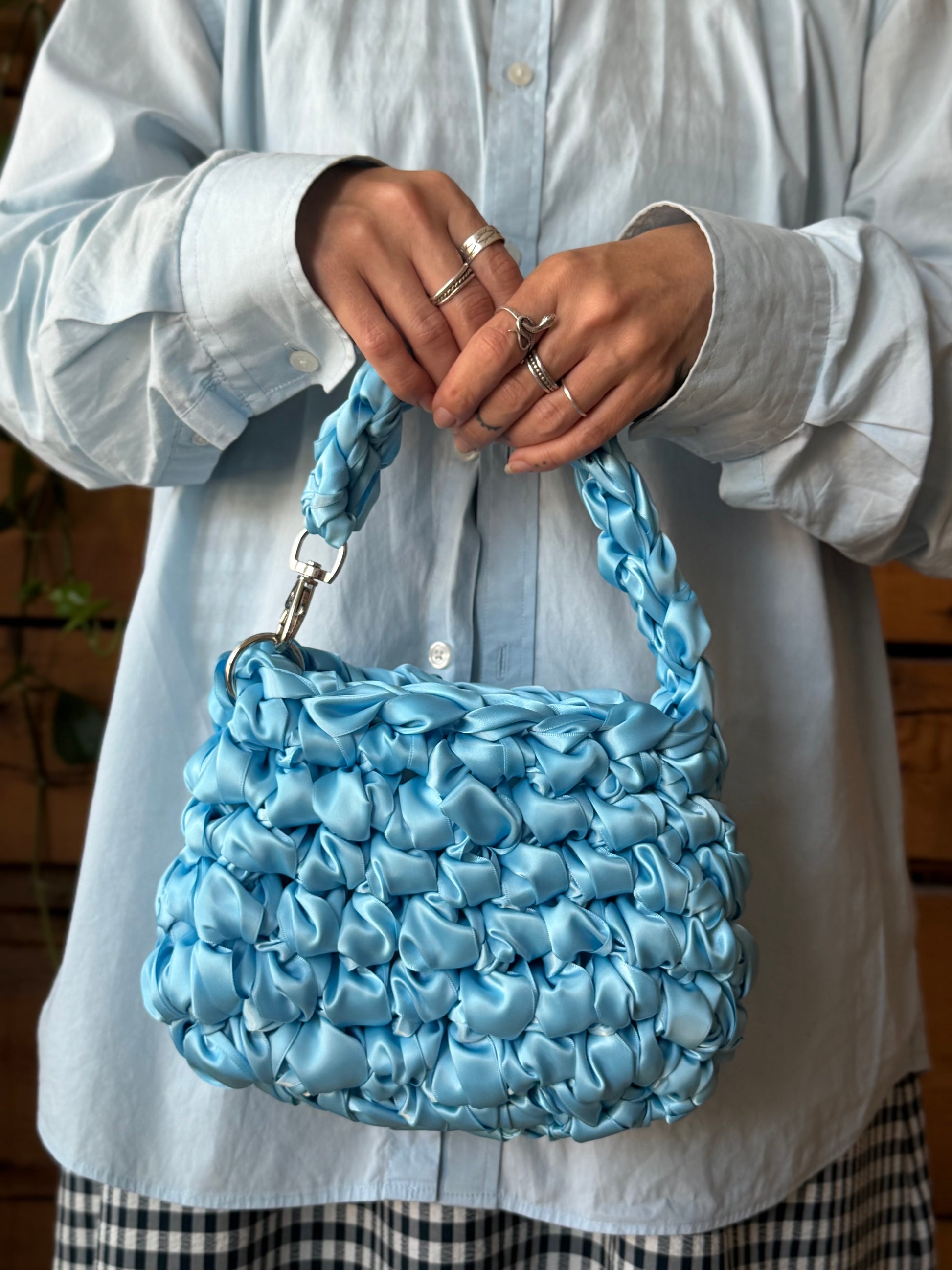 The search for the perfect handbag ends here. Meet the Carterita Mini — designed to complement your everyday looks and special occasions alike. Handcrafted from satin ribbon, its natural shine effortlessly elevates any outfit. Just fill it with your essentials and you’re ready to go.